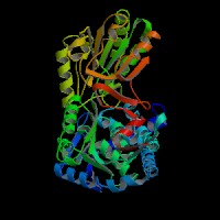 The pictures above may be empty if there is no ModBase structure for the protein. The ModBase structure frequently covers just a fragment of the protein. You may be asked to log onto ModBase the first time you click on the pictures. It is simplest after logging in to just click on the picture again to get to the specific info on that model.