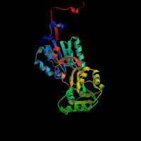 The pictures above may be empty if there is no ModBase structure for the protein. The ModBase structure frequently covers just a fragment of the protein. You may be asked to log onto ModBase the first time you click on the pictures. It is simplest after logging in to just click on the picture again to get to the specific info on that model.