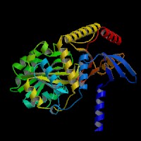 The pictures above may be empty if there is no ModBase structure for the protein. The ModBase structure frequently covers just a fragment of the protein. You may be asked to log onto ModBase the first time you click on the pictures. It is simplest after logging in to just click on the picture again to get to the specific info on that model.